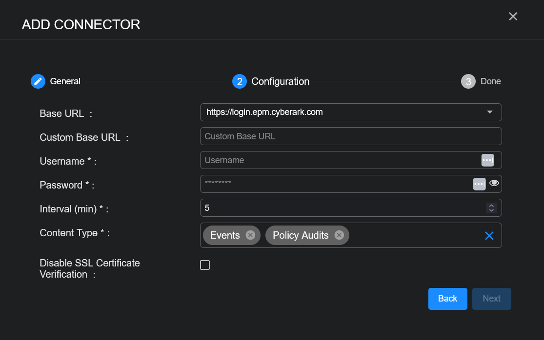 Stellar Cyber conducts a basic connectivity test for the connector and reports a success or failure result. A successful test indicates that you entered all of the connector information correctly.