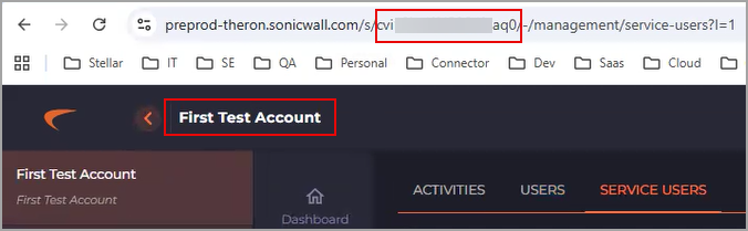 Click First Test Tenant or Second Test Tenant. In this example, the tenant is First Test Account > Second Test Tenant. The Account ID and Tenant ID are in the URL for the Second Test Tenant. The scope is <ACCOUNT_ID>.<TENANT_ID>.