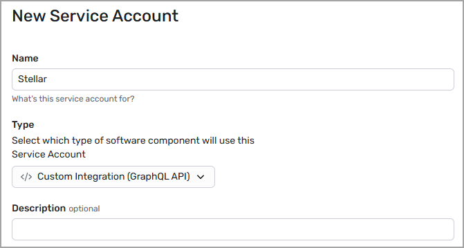 4. Enter a Name, an optional Description, and select a Type. For Type, choose Custom Integration (GraphQL API).