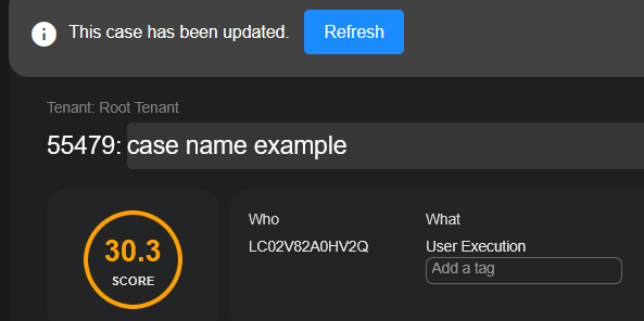 Click on the name of a case in the Case Details page, then type a new case name in Stellar Cyber.