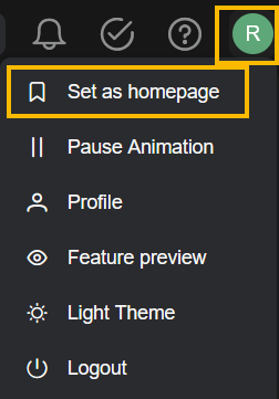 You can assign a different page to display when you select the Stellar Cyber logo (Home). When you navigate away from the XDR Kill Chain page (which is the default for Home), for example, to the Alerts page, you can select the Set as homepage menu item to make that page your new Home page. You can toggle it back by select the Unset as homepage menu item.