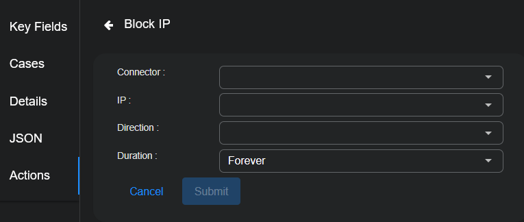 Click Submit. A quarantine on the target is immediately triggered from the SentinelOne service associated with your connector.