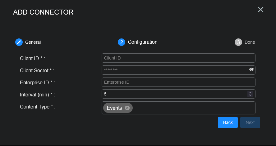 4. Add the connector in Stellar Cyber