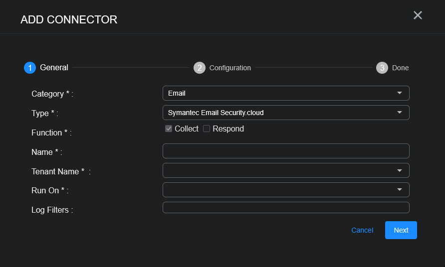 With the configuration information handy, you can add the Broadcom (Symantec) Email Security.cloud connector in Stellar Cyber: