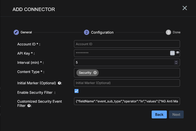 2. Add the connector in Stellar Cyber