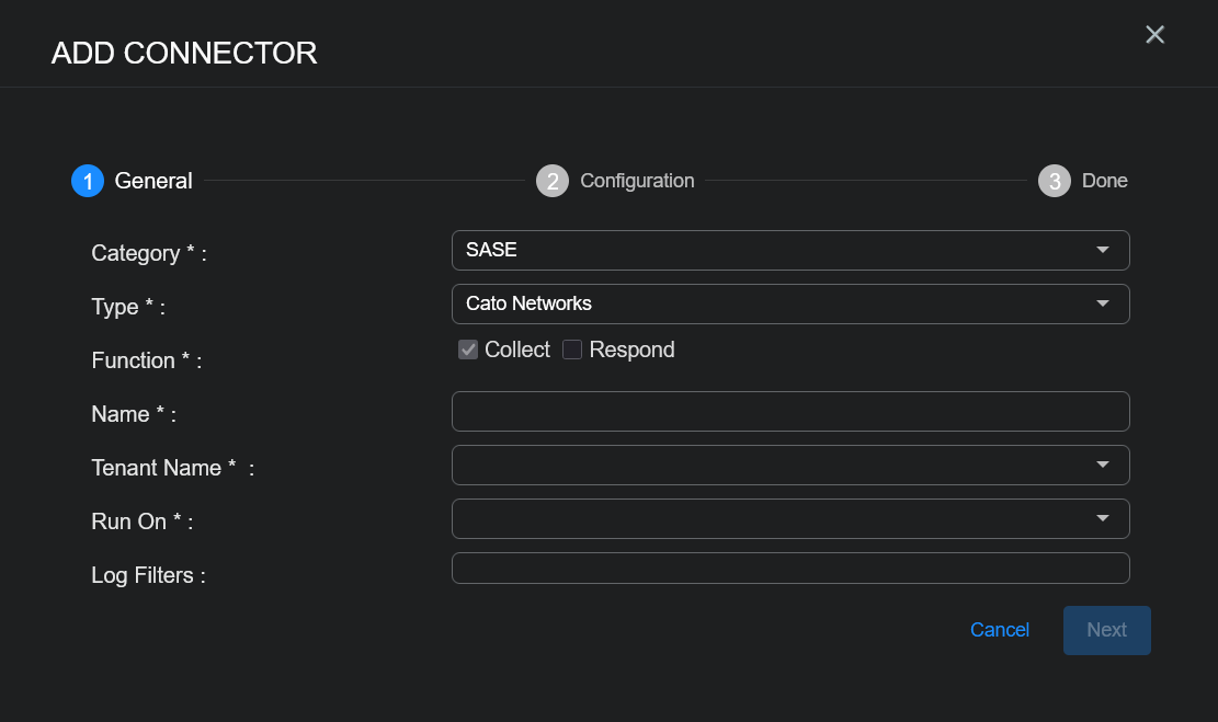 To add the Cato Networks connector in Stellar Cyber: