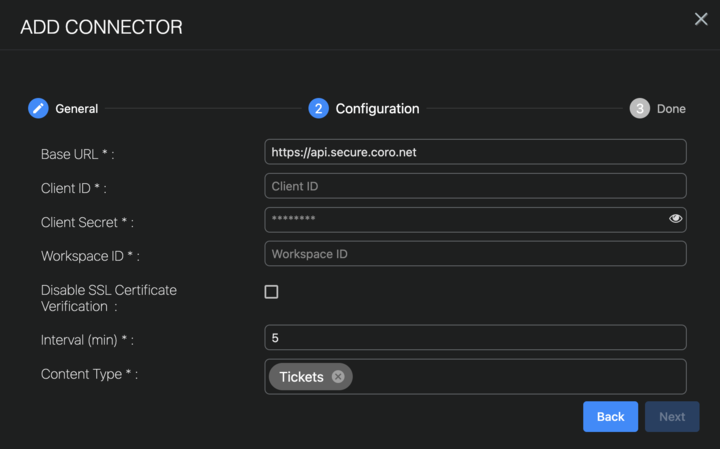 Before you configure the connector in Stellar Cyber, you must obtain the following Coro credentials: