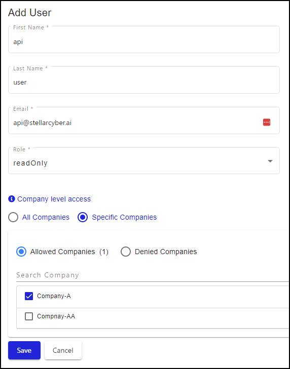 6. Under Company Access, you can select Restricted and then choose API Key.