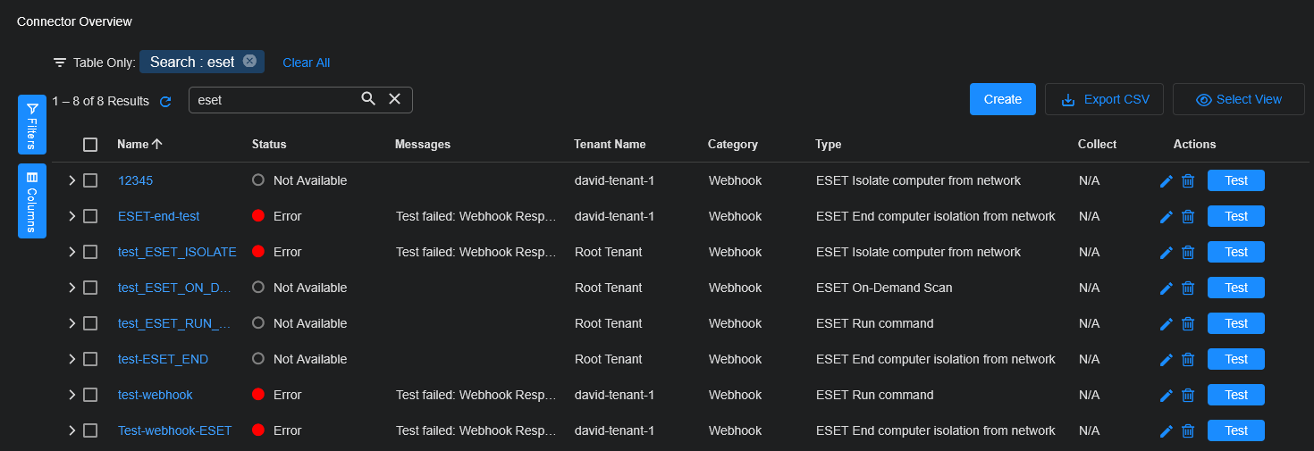When you define an ESET Responder, we recommend that you run a test to validate the connectivity parameters you entered. The test validates authentication / connectivity.