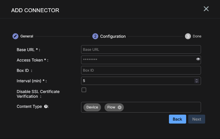 Stellar Cyber conducts a basic connectivity test for the connector and reports a success or failure result. A successful test indicates that you entered all of the connector information correctly.
