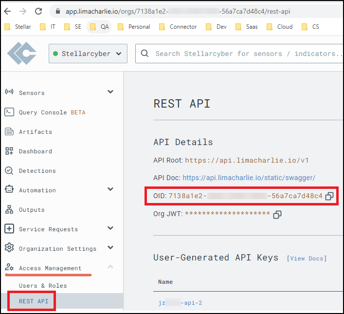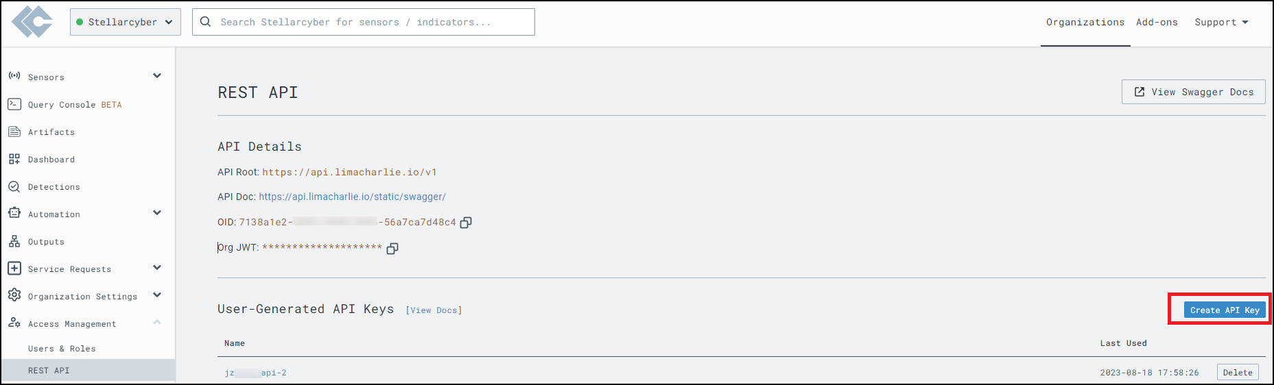 Before you configure the connector in Stellar Cyber, you must obtain the following LimaCharlie credentials: