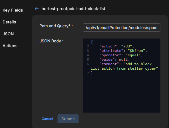 In addition, you can use Proofpoint on Demand responders to configure Webhook actions that can be triggered manually or that can enhance Automated Threat Hunting (ATH) actions.