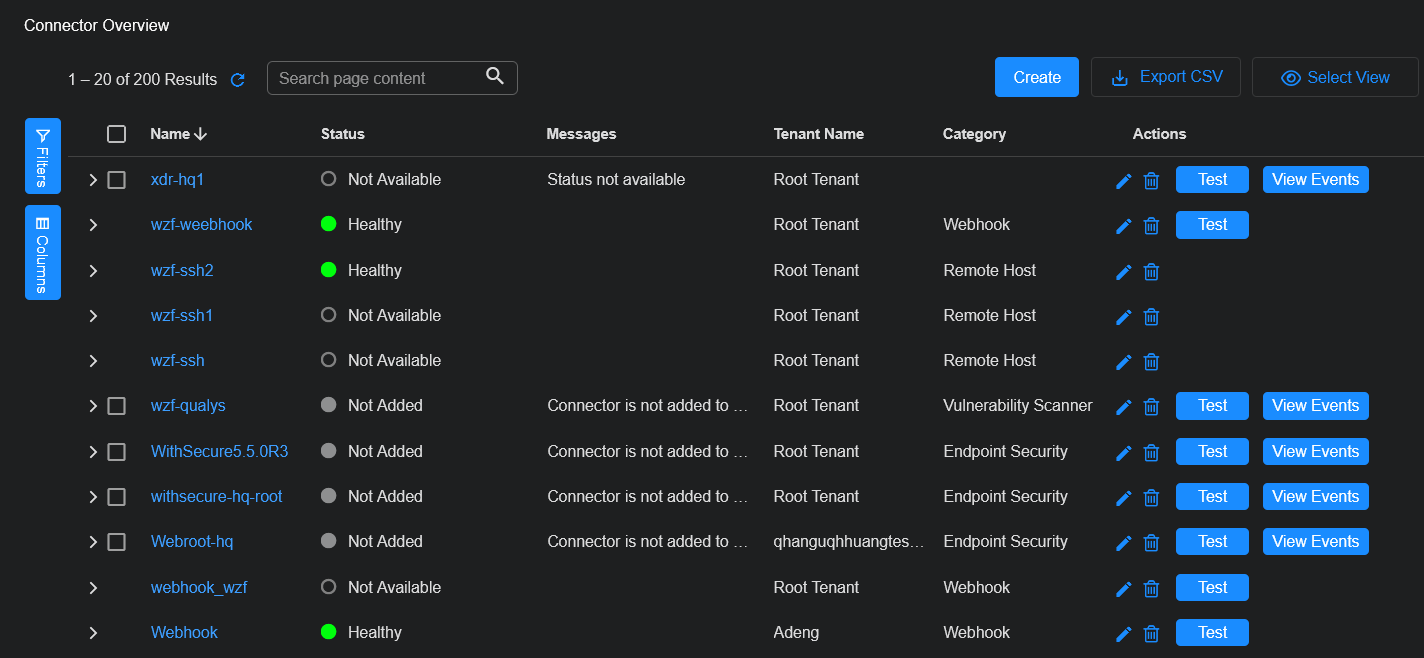 1. Click System | INTEGRATIONS | Connectors. The Connector Overview appears.