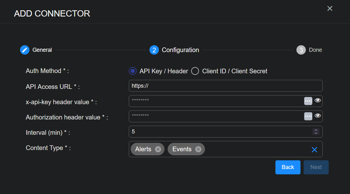 With the information ready, you can add a Sophos Central connector in Stellar Cyber: