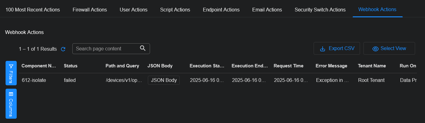 To manually trigger an action with the Universal Webhook Responder, refer to External Actions: Webhook on the Threat Hunting page: