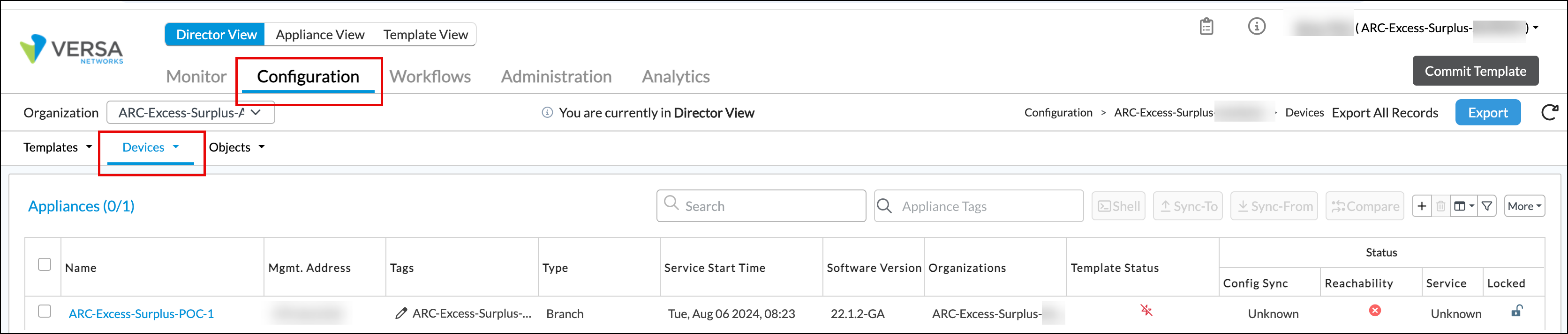 • Versa Appliance Name—Firewall appliance name. You can locate it in the Versa Director user interface under Configuration > Devices.