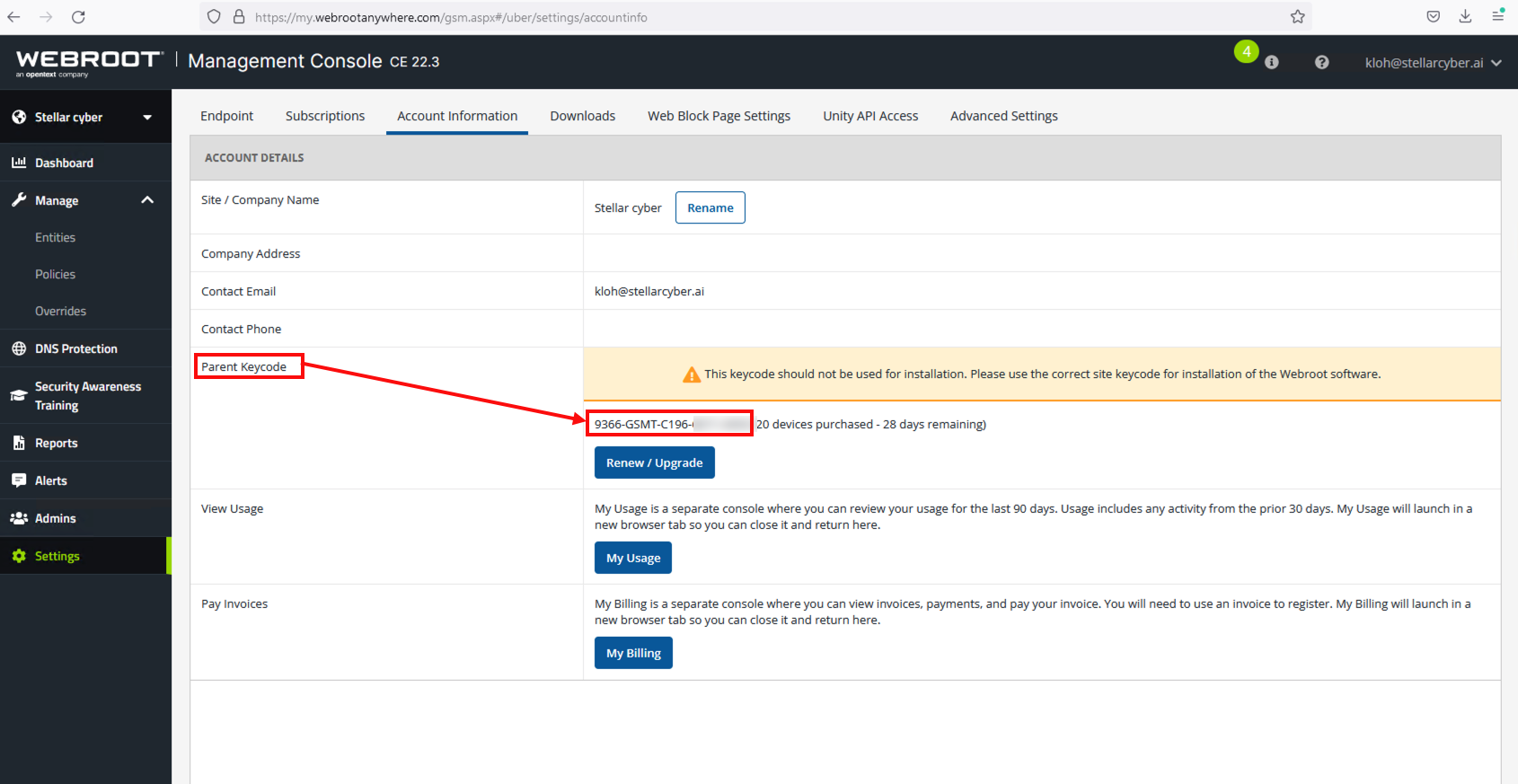 1. Obtain Webroot credentials