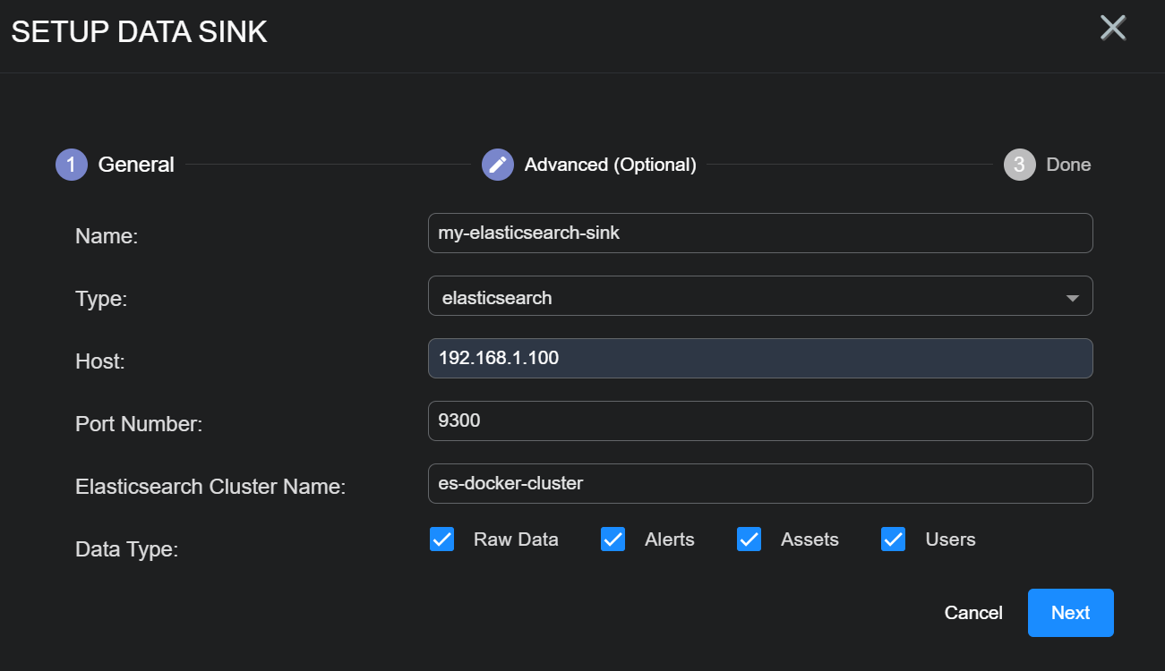 Keep in mind that another Stellar Cyber data processor can serve as an Elastic Data Sink.