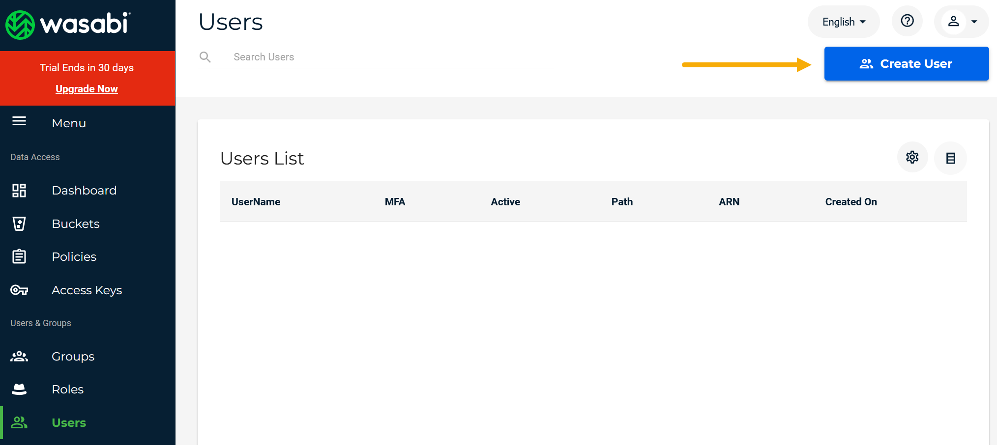 Once you have created and confirmed your wasabi account, log in to the wasabi console.