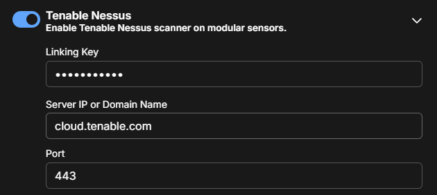 Locate the section labeled Tenable Nessus, and toggle the feature on.