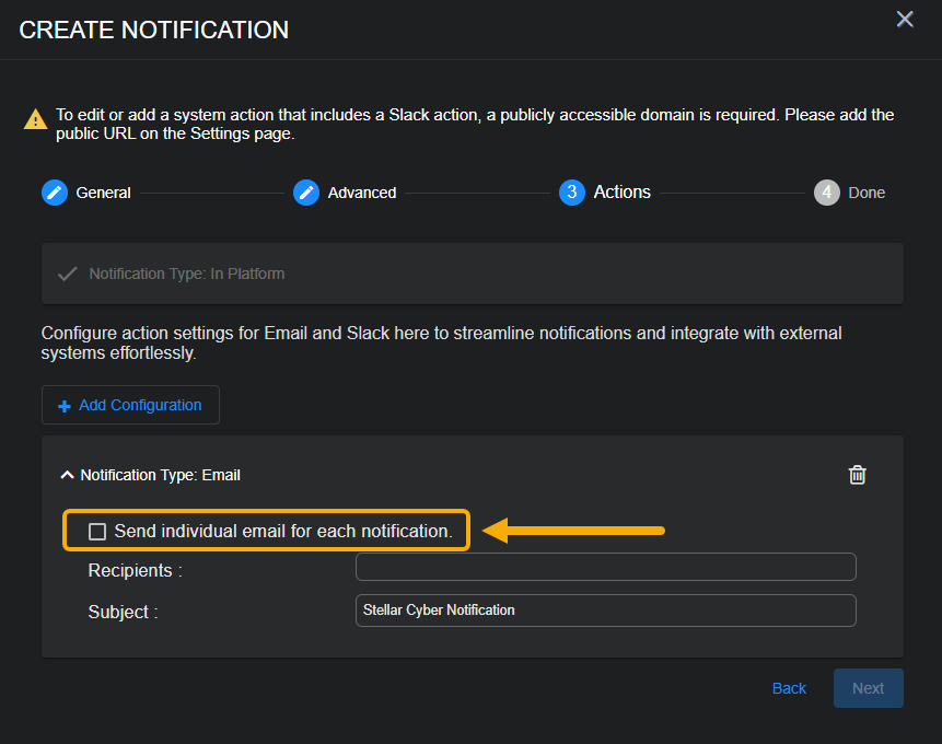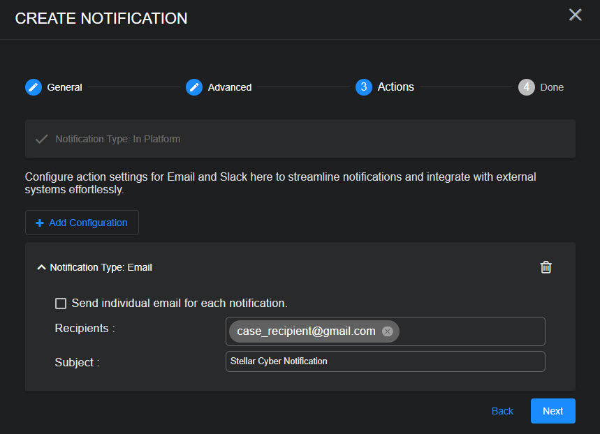When you clone a Case Management rule, Stellar Cyber automatically disables the Send to case assignee option to help prevent duplicate emails.