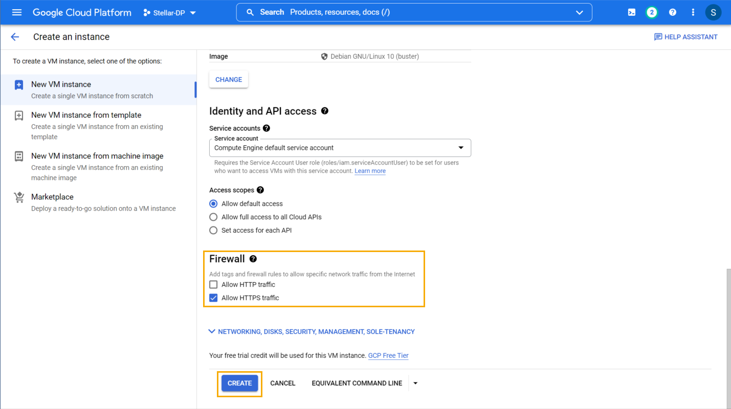 Refer to Stellar Cyber Requires Full SSD Disks for further details.You are returned to the Create an instance wizard.