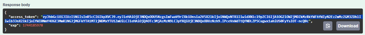 /access_tokenAPI endpoint provides us with a JWT access token, as illustrated below.The JWT access token is the green portion of the Response body between the quotation marks. Select and copy the JWT token to the clipboard, as illustrated below.