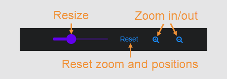 Use the controls at the top of the display to resize, reset, and zoom the display: