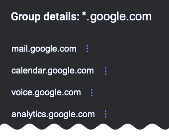 For domains: The address below the host icon is the abbreviated domain prefixed with a wildcard (*.mydomain.com, *.corporate.otherdomain.net).
