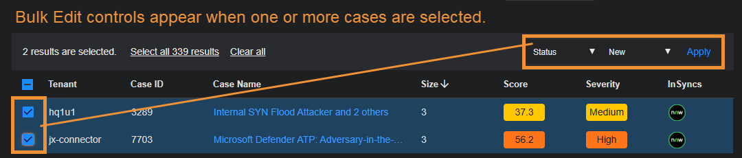Select Apply to apply your bulk action to the selected cases.