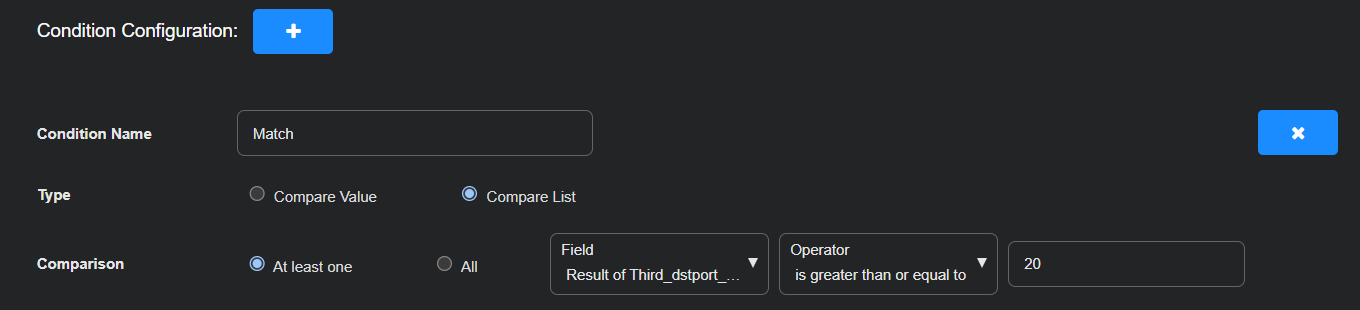 Comparison: At least one, Result of Third_dstport_agg, is greater than or equal to, 20