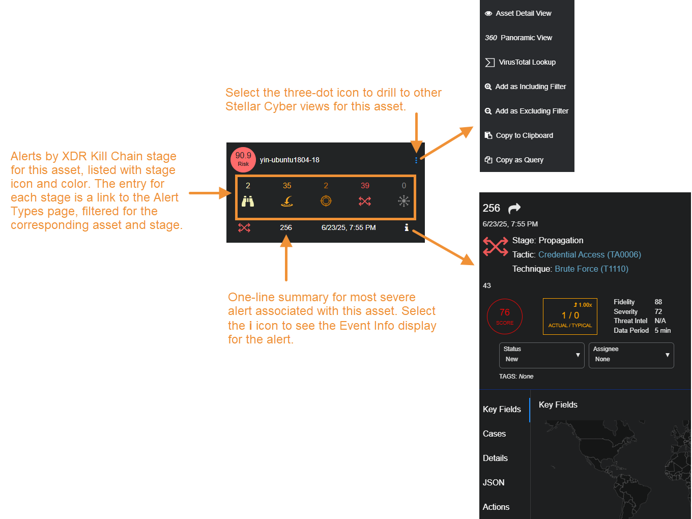 for drilldowns to the following additional Stellar Cyber for the asset: -