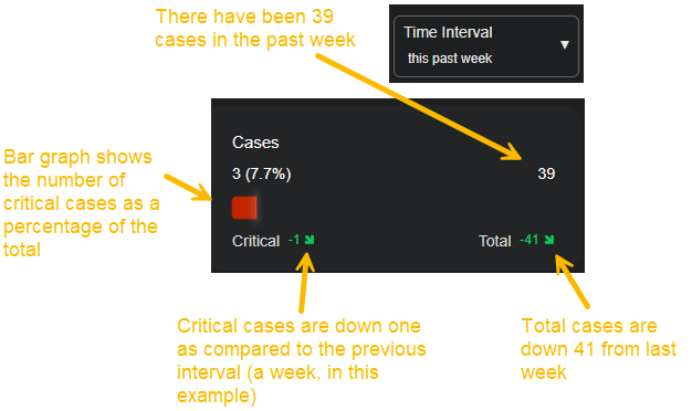 The bar graphs and counters in the Status Panel cards all function in roughly the same way. Consider the Cases status card shown below: