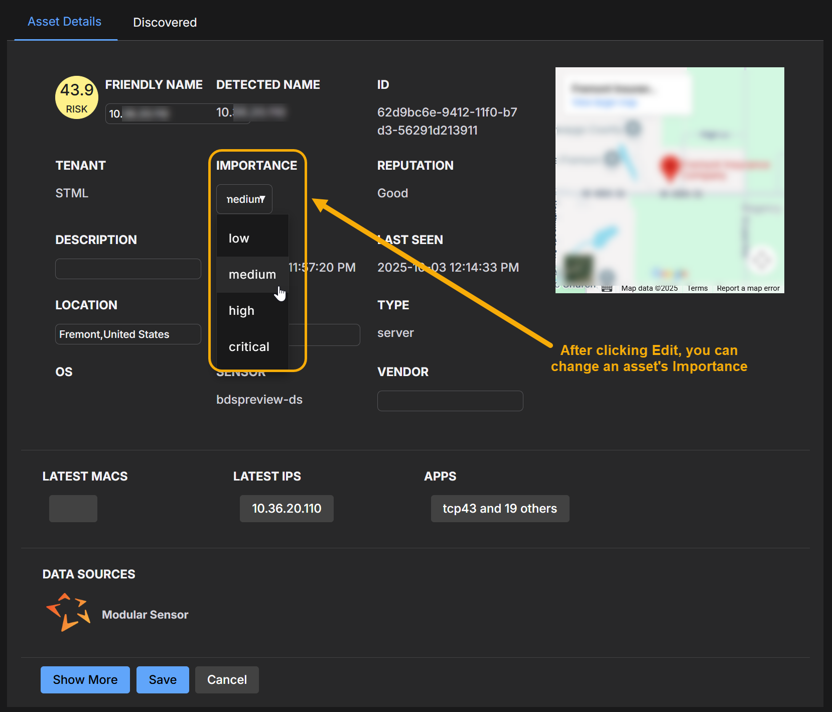 Manual updates – Users with the appropriate RBAC privileges can change an asset's importance in the Asset Details page. Manual values take priority over other sources.