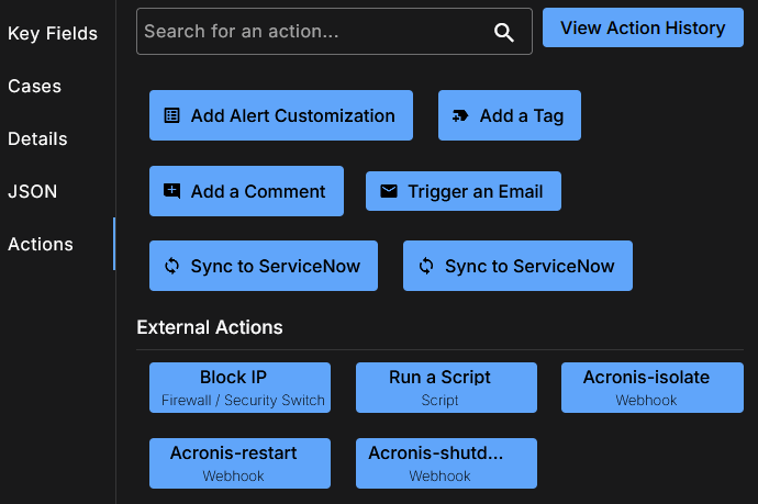 Refer to the Acronis documentation for Performing and monitoring response actions.