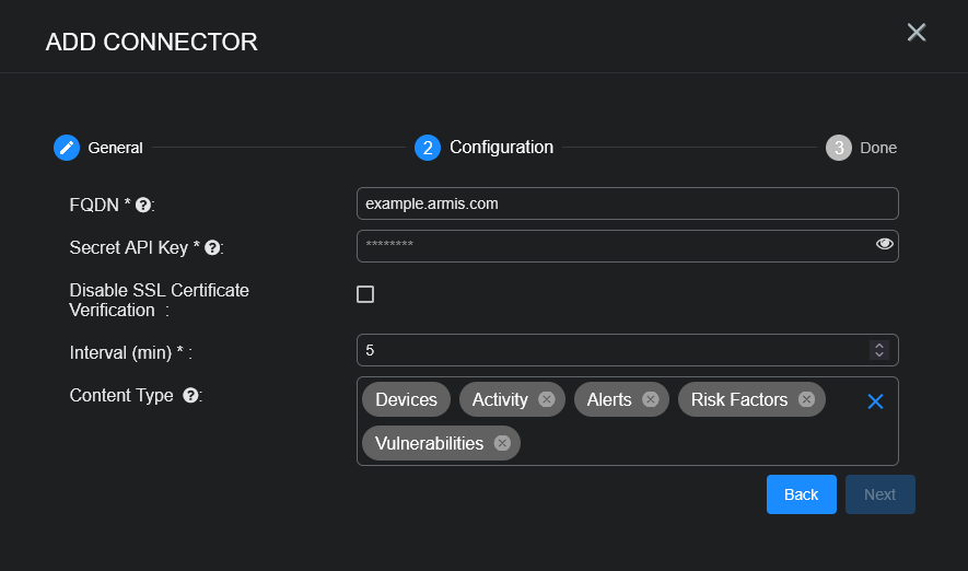 Configuring Armis Connectors