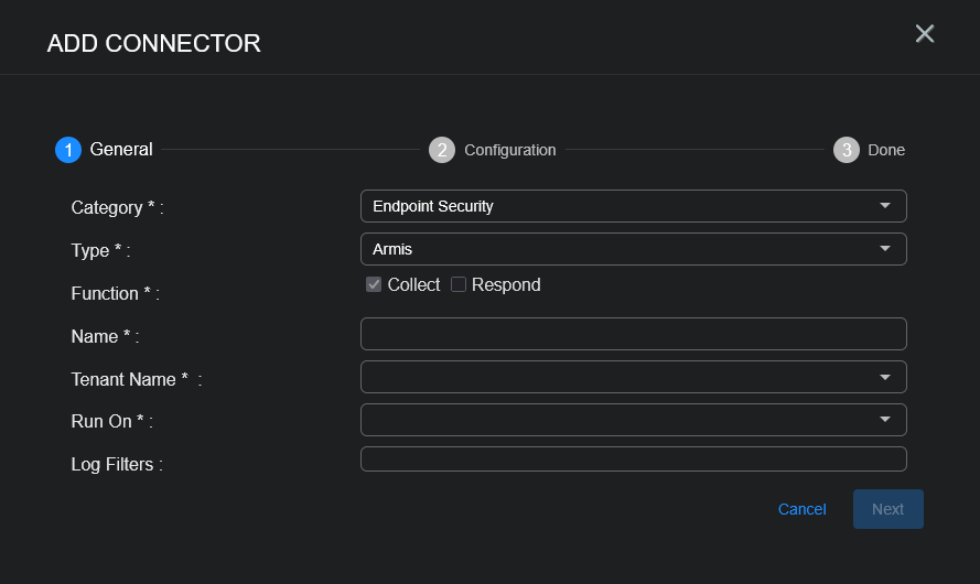 To add an Armis connector in Stellar Cyber: