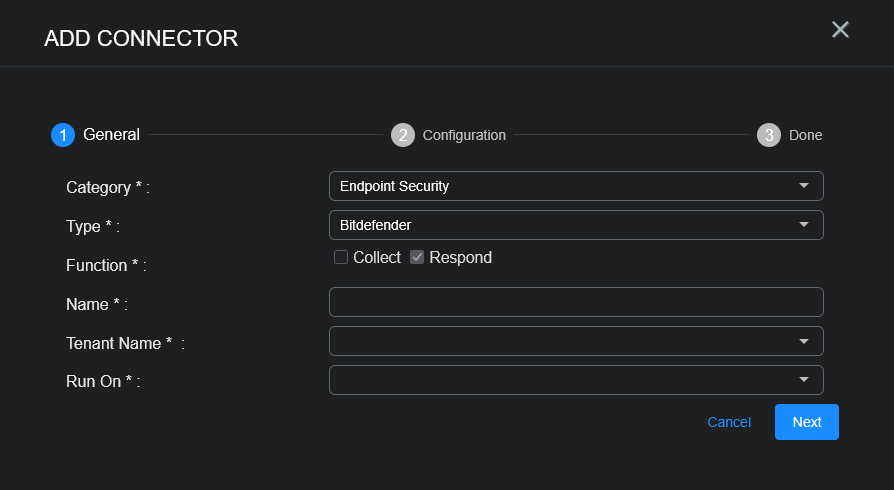 A Stellar Cyber Bitdefender connector allows you to Contain hosts (Isolate Endpoints) using an API call to the Bitdefender server managing those hosts.