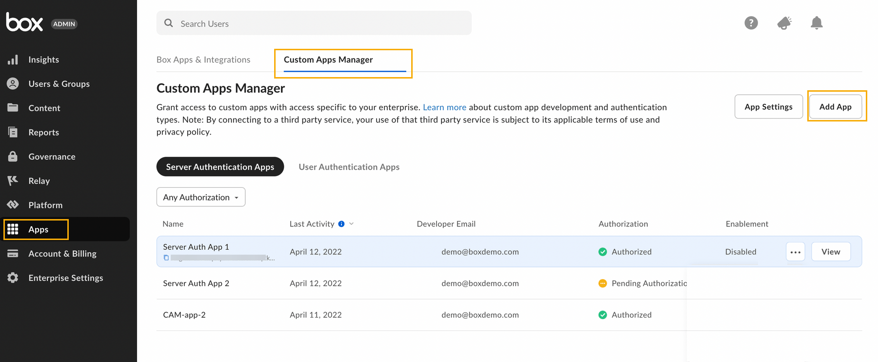 Select the Apps entry in the left navigation panel and click on the Custom Apps Manager tab.