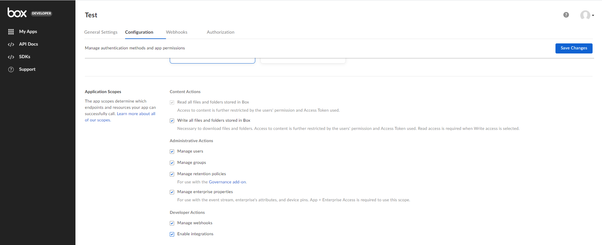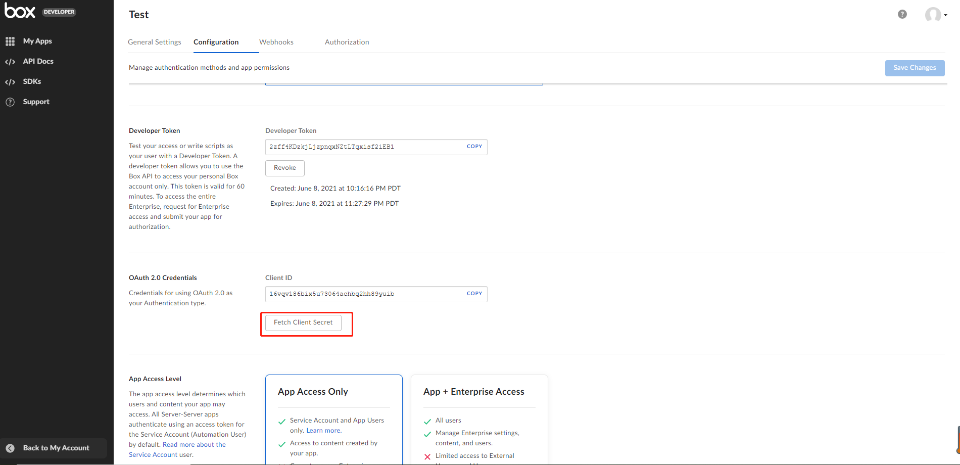 At this point, you have a Client Secret and Client ID. If you have not already noted the Enterprise ID for your Box account, use this procedure to obtain it.