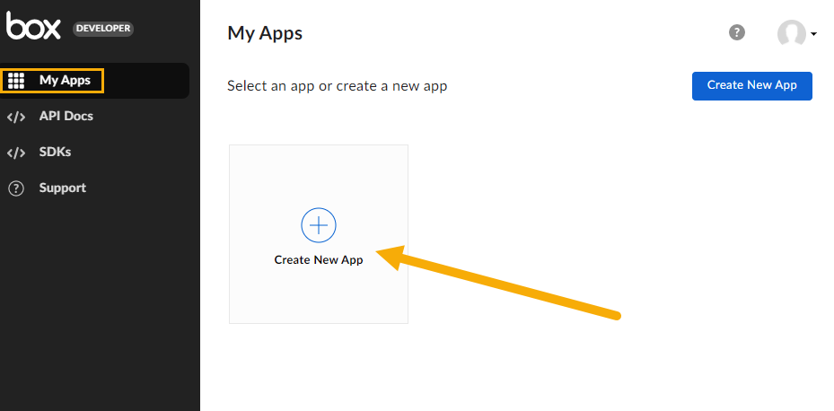 Select the My Apps pane, and then click Create New App. Note that these instructions are based on creating a Custom App, not an Enterprise App.