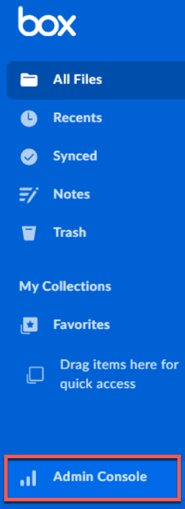 Log in to the Box Developer Console with administrative privileges (http://app.box.com/developers/console). If you logged in to box.com instead, select Dev Console from the navigation pane.