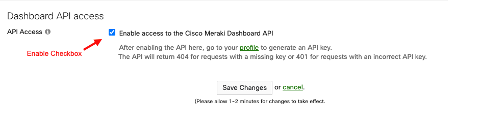 Next, scroll down the page to API Access and ensure the corresponding checkbox is enabled.
