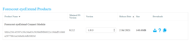Download the eyeExtend Connect Module, v1.9.0 or later. This .fpi file allows you to install a web API connector to configure for communication with Stellar Cyber.