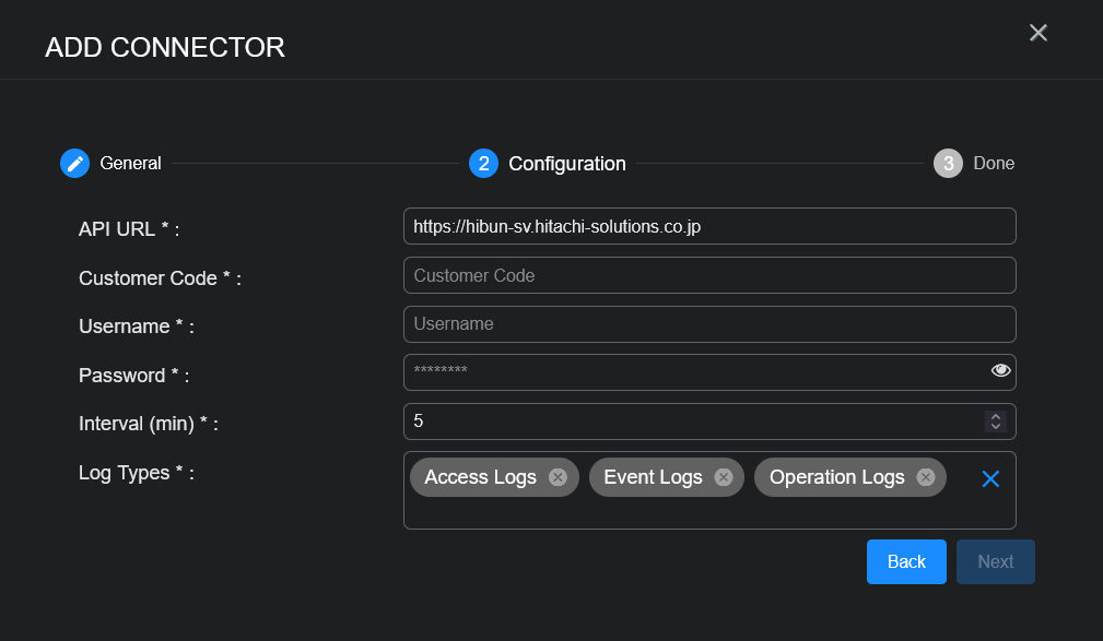 Before you configure the connector in Stellar Cyber, you must obtain the following HIBUN credentials from Hitachi Solutions at https://www.hitachi-solutions.co.jp/hibun/sp/: