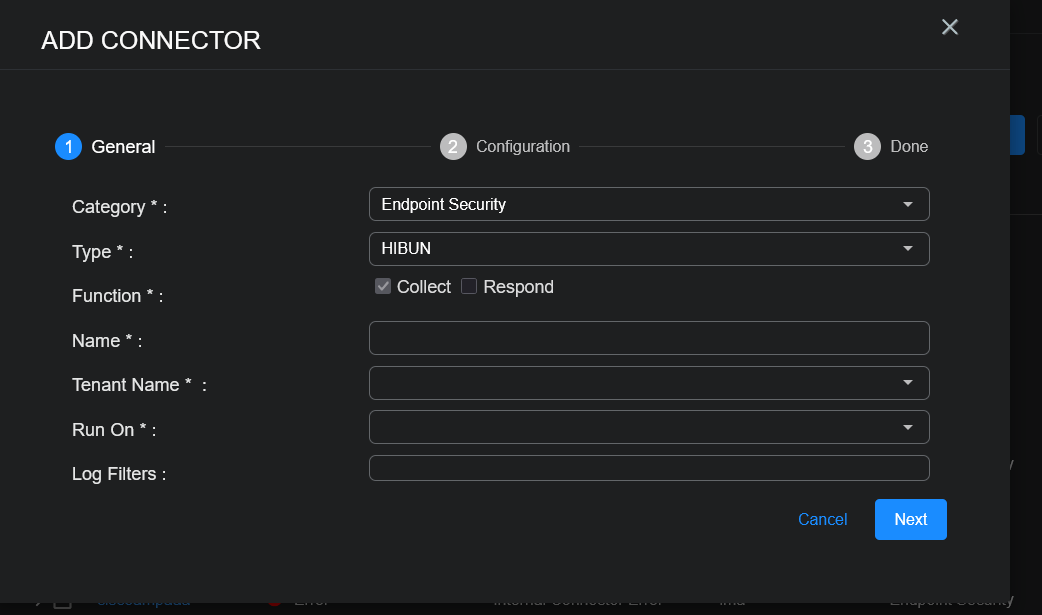 To add a HIBUN connector in Stellar Cyber: