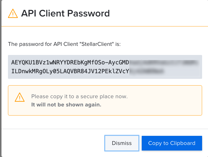 From the dialog that displays next, copy the API Client Password. Save this value for later use.