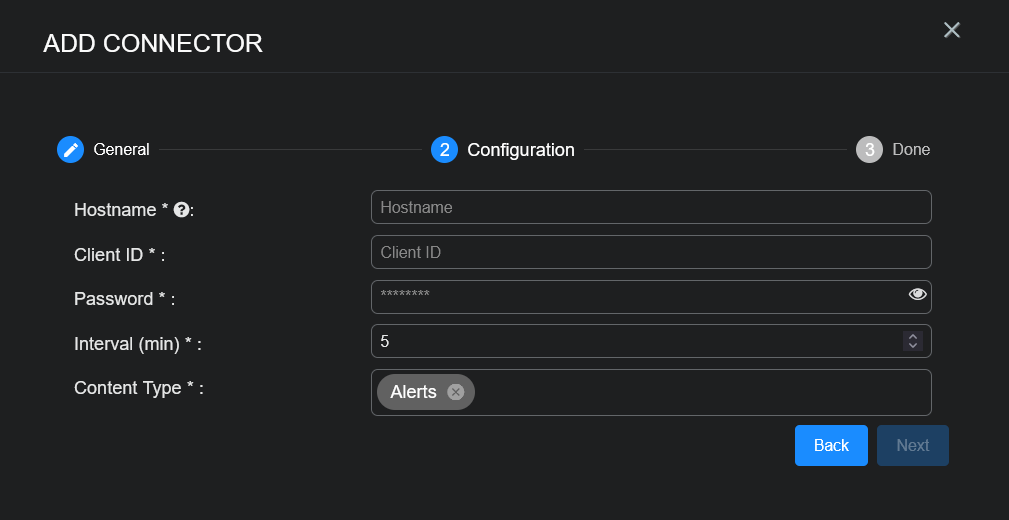 - Add the connector in Stellar Cyber