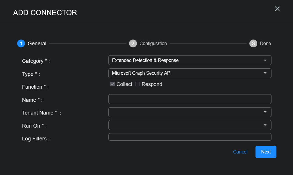 To add a Microsoft Graph Security API connector in Stellar Cyber: