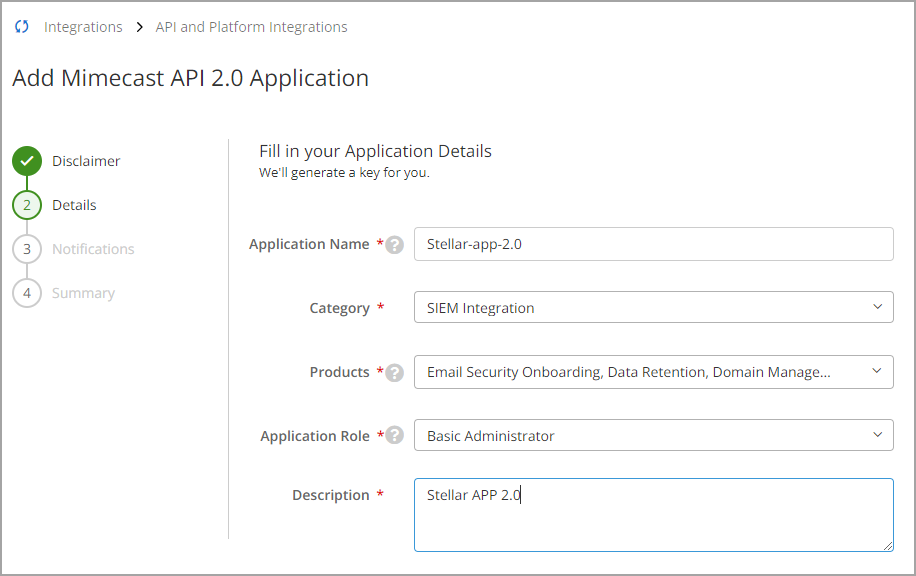 Before you configure the connector in Stellar Cyber, you must obtain the following Mimecast credentials: